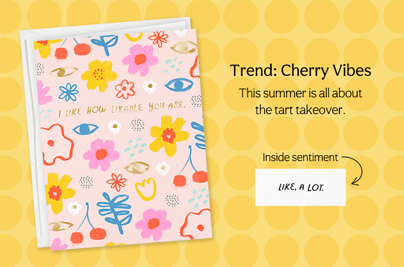 Move over, brat green—it’s officially a cherry-red summer! With pops of pretty florals to balance out all that tart goodness, this sweet friendship card is our current go-to for friendship anniversaries, bestie birthdays and all your platonic soul mate celebrations.