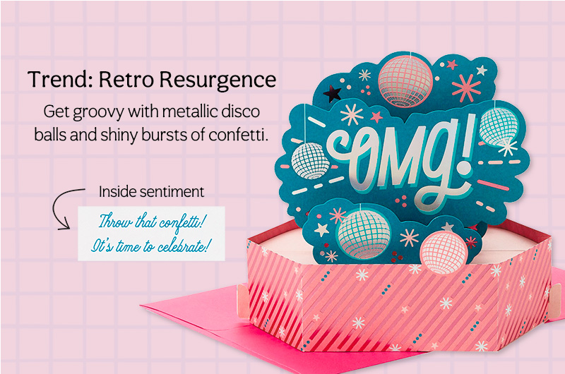 Will disco ever go out of style? We think not. Adorned with metallic disco balls and bursts of confetti, this 3D pop-up card brings extra fun to any occasion. No matter what you’re celebrating, we’ve got tons of message ideas for a congratulations card to help, too!