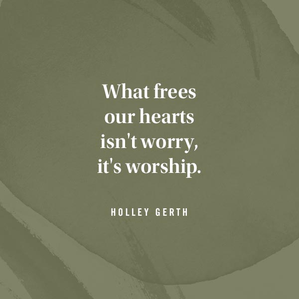 What frees our hearts isn’t worry; it’s worship. In other words, taking all the hard things to Someone who cares for us. Choosing to trust and let go. Believing through the blood, sweat, and tears, He will mysteriously work it all together for good.