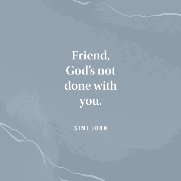 Friend, God is not done with you. He isn’t disappointed that your gifts and talents look different today than they di...