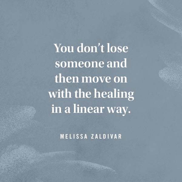 You don’t lose someone and then move on with the healing in a linear way. Rather, it resurfaces over and over, and yo...